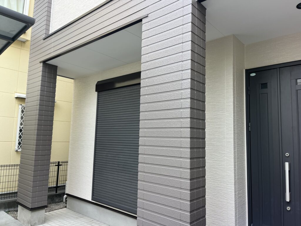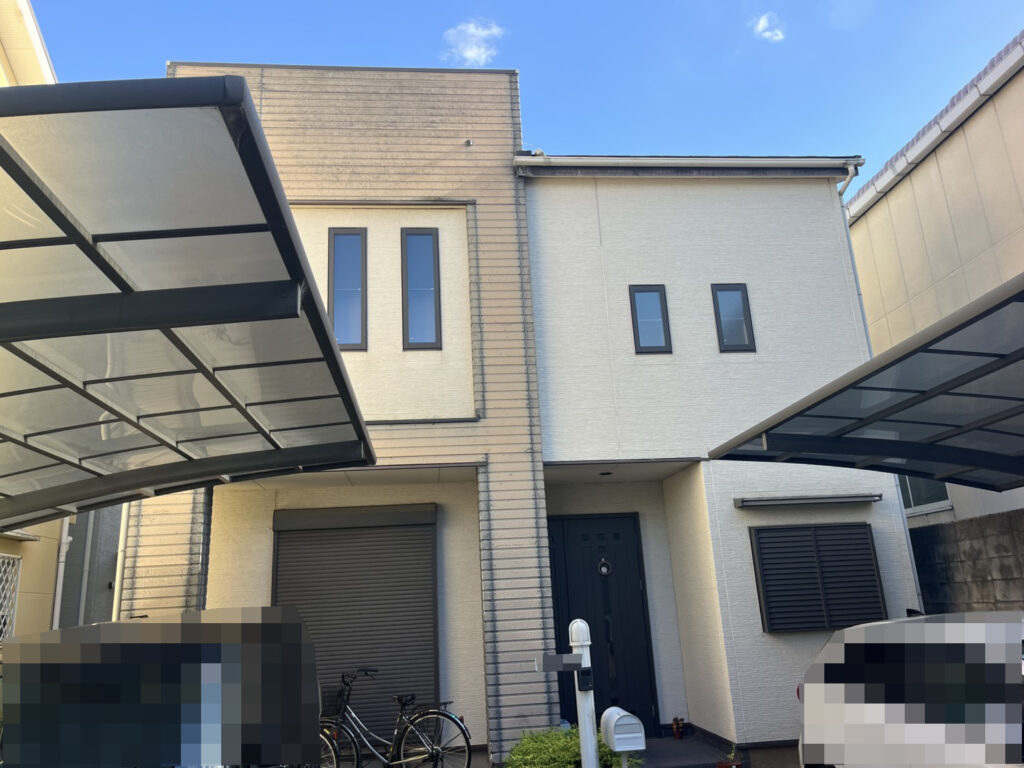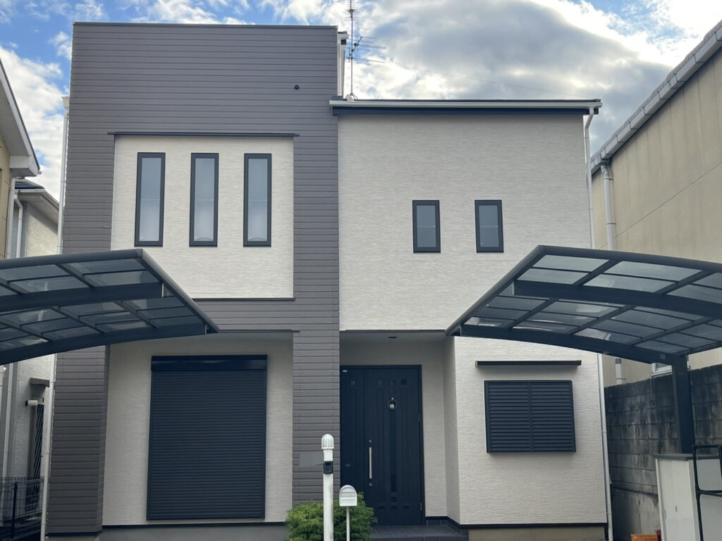 | 外壁施工仕様 | 【工程】下塗り・上塗り1・上塗り2 計3回塗り 【下塗り材】エスケー化研 サーフエポプレミアム 【上塗り材】エスケー化研 プレミアムシリコン 【使用色番】メイン:SR-409 アクセント:SR-414 |