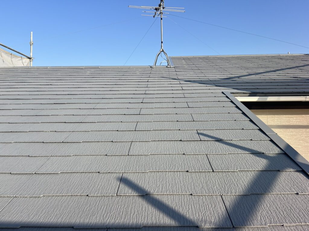| 屋根施工仕様 | 【工程】下塗り・タスペーサー・上塗り1・上塗り2 【下塗り材】エスケー化研 強化シーラー 【上塗り材】エスケー化研 プレミアム無機ルーフ遮熱 【使用色番】CLR-106 グレー |